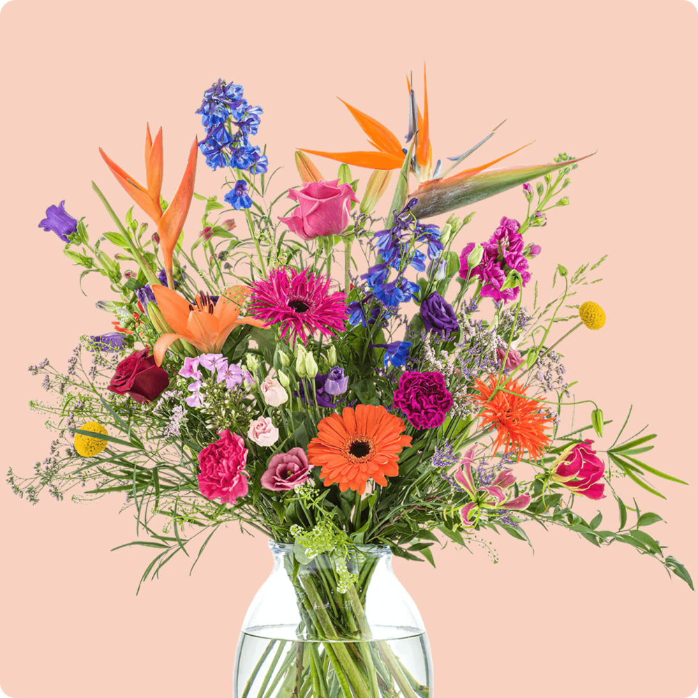 Laat weten dat je aan diegene denkt en voeg aan het boeket een liefdevolle kaart met persoonlijke boodschap toe.