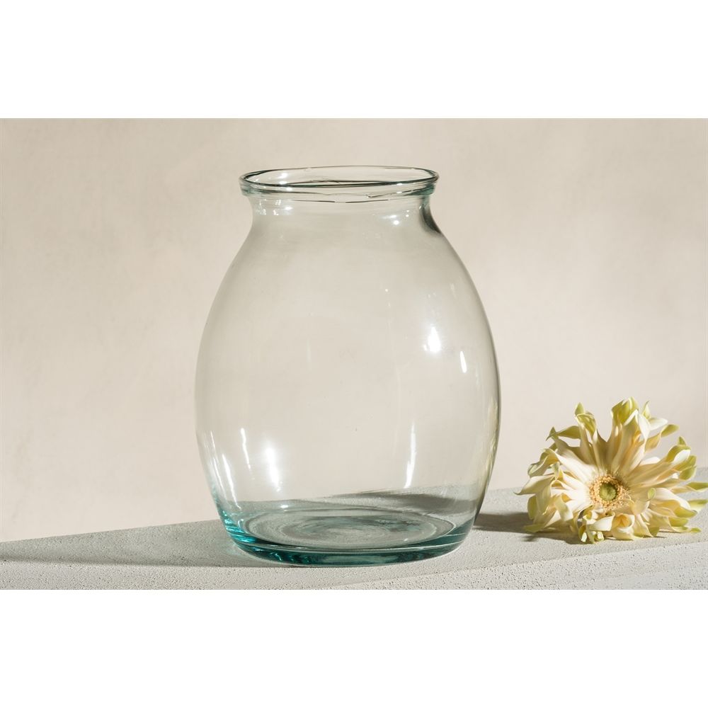 Bezorg je boeket in stijl met onze Deluxe glasvaas. Mondgeblazen en vervaardigd van gerecycled glas, straalt deze vaas elegantie uit. Met royale afmetingen van 27cm hoog en een diameter van 22cm is het de perfecte aanvulling op onze exclusievere boeketten