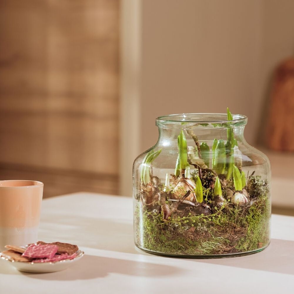 Onze bloembollen in vaas zijn een echte blikvanger. De bloembollen met voorjaarsbloemen worden geplaatst in een onze stevige, handgemaakte en mondgeblazen vaas. De bloembollen worden omhuld met mooie groenmaterialen. De bollen worden voornamelijk in de kn Het geleverde boeket wijkt af van de foto aangezien bloemen natuurproducten zijn.