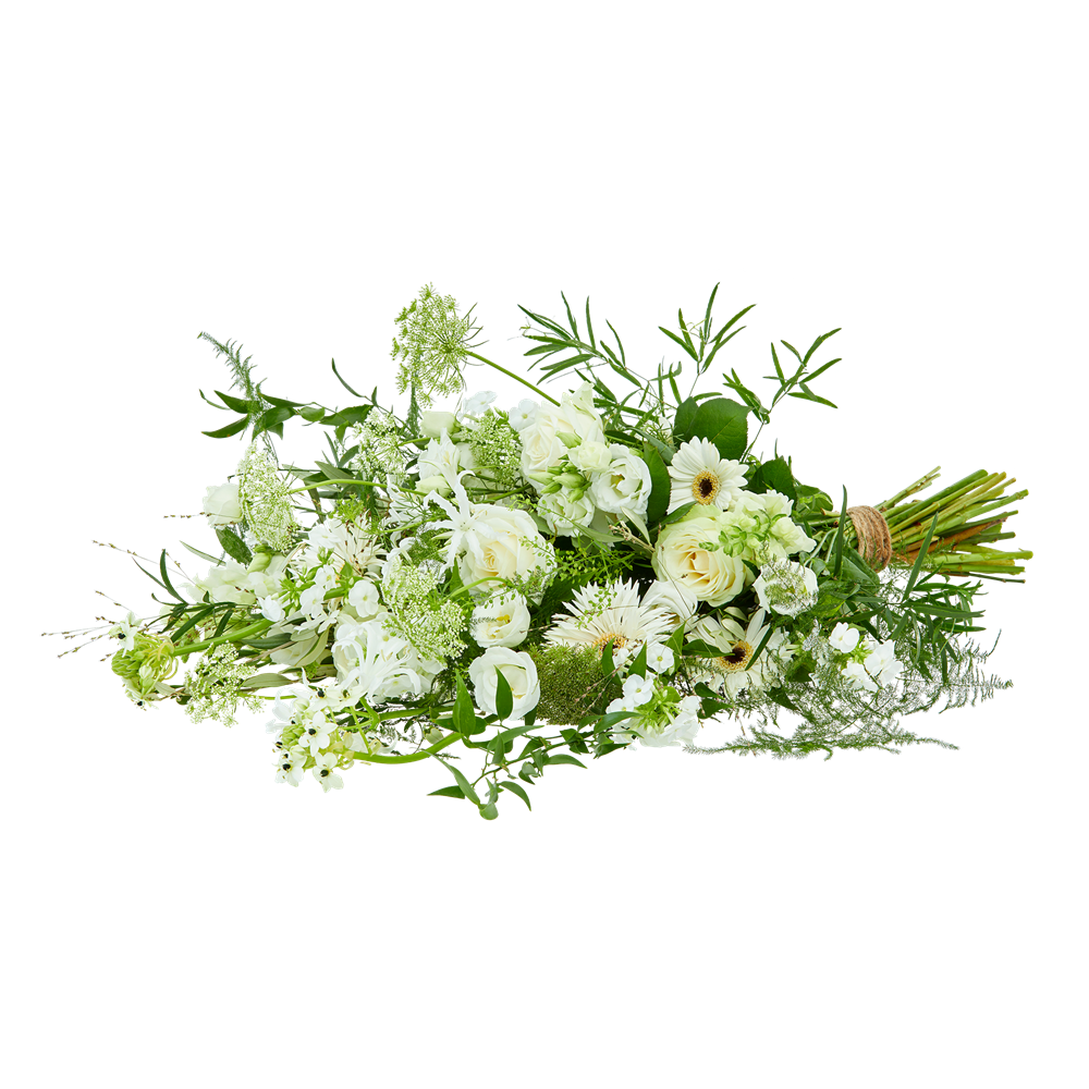 Het rouwboeket Elegant - Luchtig en modern - De rouwbloemen worden persoonlijk samengesteld - Bezorging op locatie naar keuze. Dit rouwboeket heeft een klassieke uitstraling, waardoor het geschikt is voor elk afscheid. Beschikbaar in drie formaten, exclusief vaas. Bestellingen met rouwwerk worden zorgvuldig gecontroleerd om aan je wensen te voldoen. Laat de bloemist het rouwboeket bezorgen op het gewenste moment. Een troostende gedachte in moeilijke tijden.