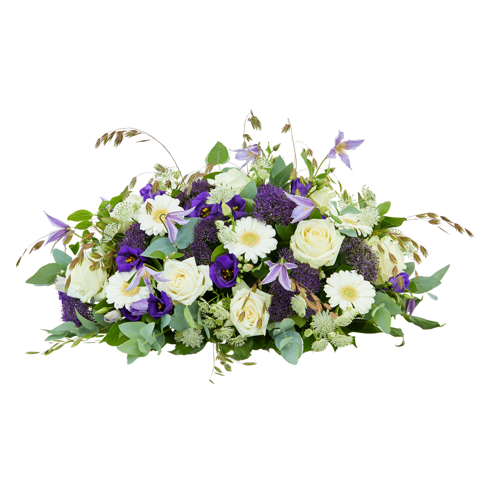 Het ovale rouwstuk 'Ingetogen': tijdloos en compact boeket in pastelkleuren. Wit symboliseert puurheid, oprechtheid en perfectie, prachtig gecombineerd met lilatinten. Een passend eerbetoon aan uw dierbare. De klassieke en tijdloze uitstraling van dit ovale bloemstuk zorgt dat het passend is bij elk afscheid. Beschikbaar in 60cm, 80cm of 100cm. Wist u dat elke bestelling met rouwwerk persoonlijk en handmatig door ons team wordt gecontroleerd? Zo garanderen wij een levering die aan al uw wensen voldoet tijdens deze moeilijke periode.