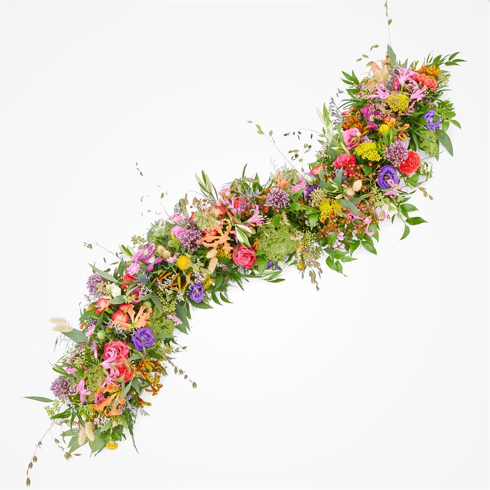 Ontdek het betoverende Kleurgolf rouwstuk, een levendig meesterwerk van warme kleuren. Laat je betoveren door de intense bloemenpracht die je doet denken aan zomerse weelde. Een unieke creatie die beschikbaar is in 100cm en een prachtig eerbetoon vormt. Perfect om liefde en troost over te brengen aan iemand die je dierbaar is. Maak een blijvende indruk door dit weelderige rouwstuk cadeau te doen en stuur een boodschap van warmte en waardering. Laat onze kunstzinnige arrangementen je helpen om op een tastbare manier je liefde en medeleven te tonen. Met onze bezorgservice verspreiden we dit levendige blijk van genegenheid door heel Nederland, zodat je zelfs op afstand dichtbij kunt zijn. Geef nu iets moois dat de ontvanger zal koesteren en waarvan de prachtige herinnering blijft.