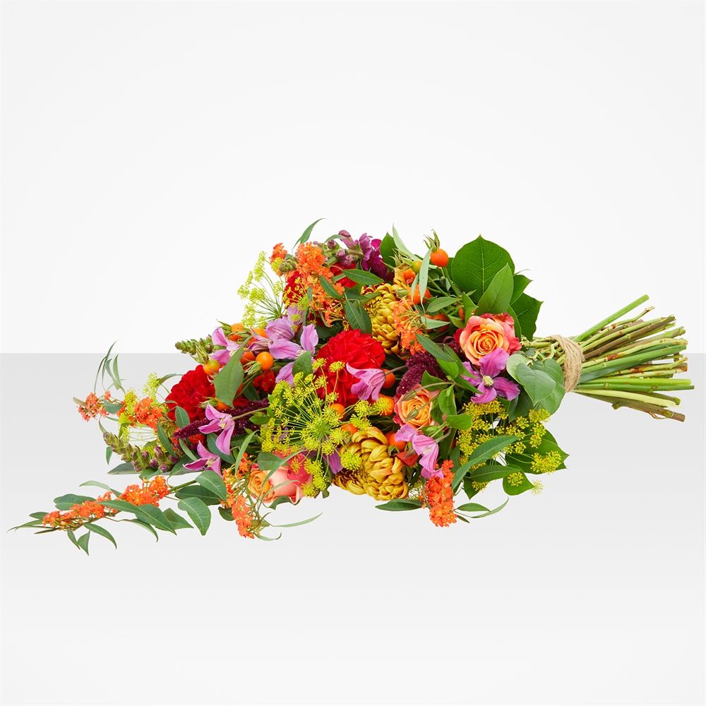 Verwen je geliefden met het betoverende boeket "Najaarsgloed" - een elegante mix van bloemen die warmte en troost brengen. Een stijlvol gebaar van liefde en steun. Laat dit prachtige boeket bezorgen als blijk van genegenheid en warmte. Elk detail is zorgvuldig samengesteld om een blijvende indruk achter te laten. Het boeket wordt geleverd zonder vaas, zodat de ontvanger direct kan genieten van de volle pracht van deze bloemen. Laat je gevoel spreken met dit unieke rouwboeket en laat je geliefden weten dat ze niet alleen zijn in hun verdriet. Bestel vandaag en stuur een boodschap van liefde en verbondenheid.