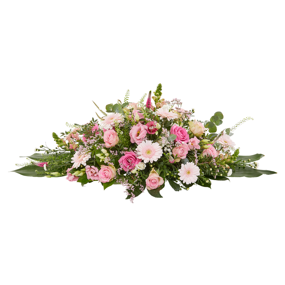 Het ovale rouwstuk "Omhelzing" in roze tinten | Uniek rouwwerk - Bezorging aan huis Het ovale rouwstuk "Omhelzing" is een tijdloos en liefdevol bloemstuk met de mooiste bloemen in diverse roze en lichtroze tinten. Het is een gepaste keuze voor een persoonlijk en warm afscheid. Dit klassiek-moderne rouwstuk is zorgvuldig samengesteld, zodat de bloemen prachtig compact en toch luchtig ogen voor een respectvol eerbetoon. Het rouwstuk "Omhelzing" is verkrijgbaar in drie formaten: 60cm (klein), 80cm (middel), of 100cm (groot). Bij iedere bestelling met rouwwerk wordt de samenstelling persoonlijk gecontroleerd door onze toegewijde klantenservice. Zo garanderen wij dat het rouwstuk voldoet aan jouw wensen en verwachtingen. Onze ervaren Fleurop bloemisten bezorgen de rouwbloemen op elke gewenste locatie, of het nu bij een kerk, rouwcentrum of crematorium is. Je hoeft zelf niet naar de bloemist te gaan, want onze Fleurop bloemisten zorgen ervoor dat het rouwstuk op het juiste moment wordt afgeleverd. Op die manier stralen de bloemen op hun mooist, wat een troostende gedachte kan zijn in een verdrietige tijd.