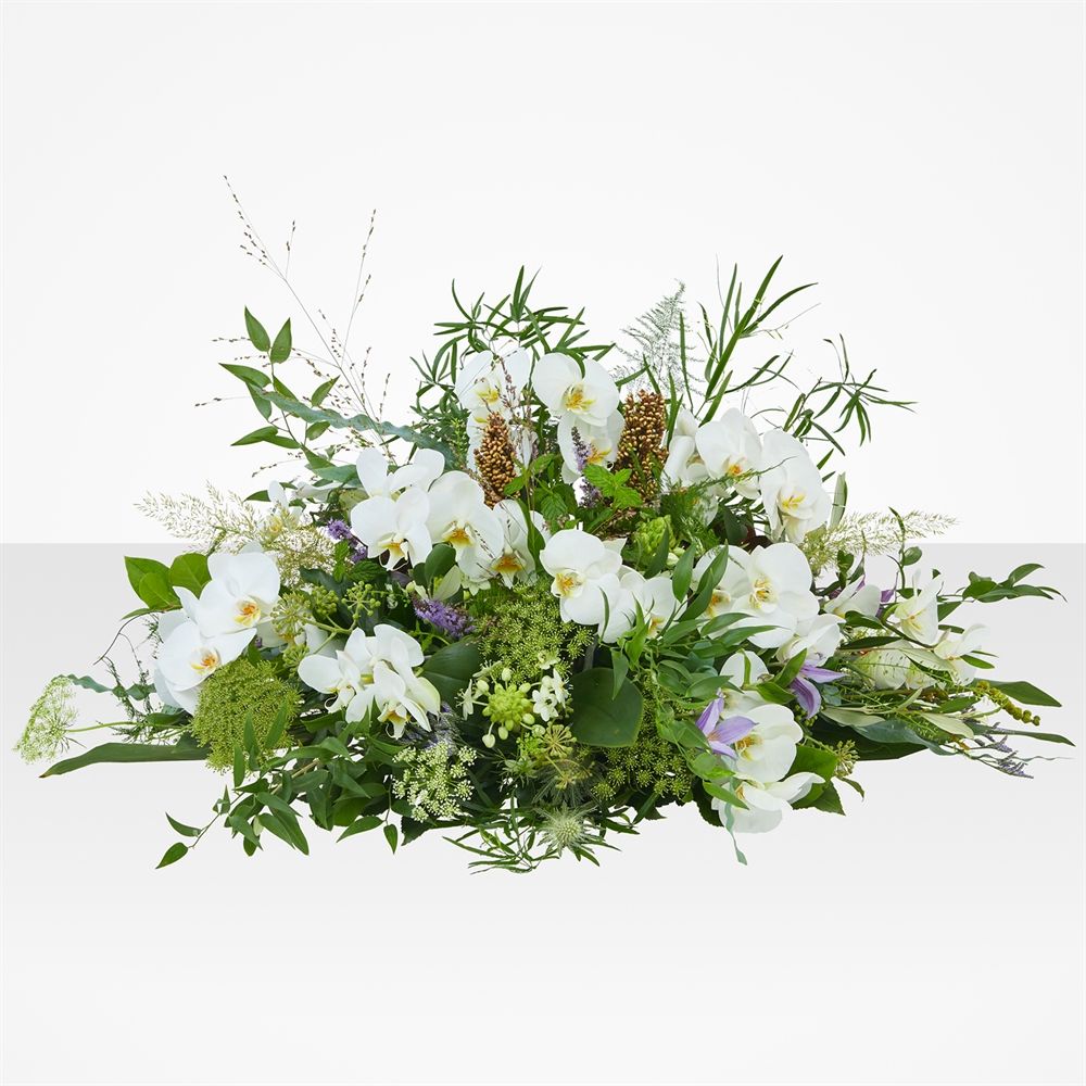 Laat je hart spreken met het weelderige ovale bloemstuk Pure Weelde. Wit en pastel brengen een boodschap van puurheid en perfectie. Deze klassieke creatie is tijdloos en geschikt voor elk afscheid. Een serene toevoeging aan een emotioneel moment. Bestel Pure Weelde voor een betekenisvol gebaar.