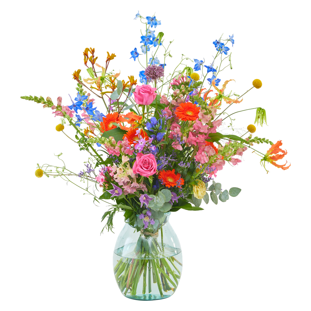 Rouwboeket Rijke Kleuren: Modern en Kleurrijk | Persoonlijk Bezorgd Het rouwboeket Rijke Kleuren is een eigentijds en levendig veldboeket. De opvallende en unieke bloemen zorgen voor een prachtig eerbetoon tijdens een warm afscheid. Exclusief vaas. Bij iedere bestelling met rouwbloemen wordt zorgvuldig en persoonlijk gecontroleerd. Zo verzekeren wij dat het rouwarrangement nauwkeurig wordt samengesteld volgens jouw wensen. De levering van de rouwbloemen vindt plaats op een voorkeurslocatie (bij bijvoorbeeld een kerk, rouwcentrum of crematorium). Je hoeft het rouwboeket niet zelf op te halen; onze bloemist zorgt ervoor dat de bloemen op het juiste moment arriveren en op hun mooist zijn. Een geruststellende gedachte in moeilijke tijden.