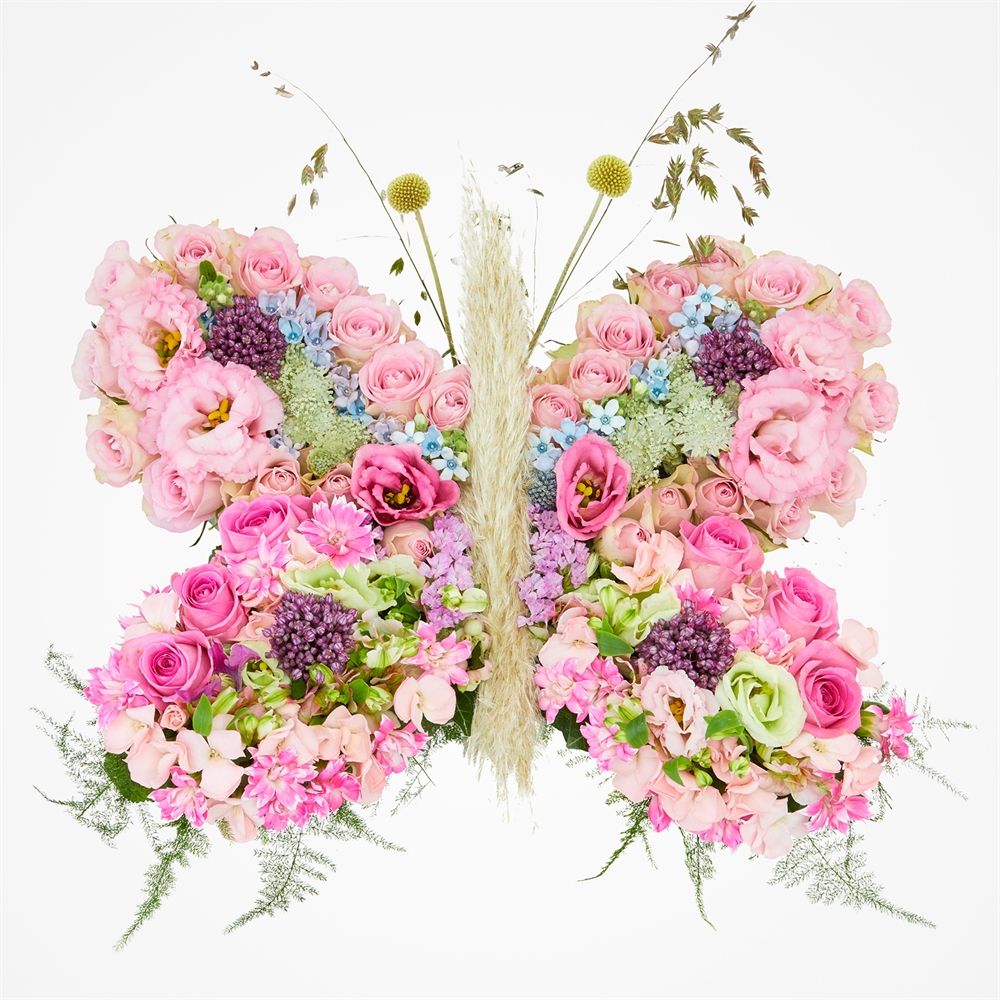 Laat jouw ster schitteren met ons rouwstuk 'Weggevlogen', gevormd als een prachtige vlinder. Dit unieke bloemstuk uit ons 'Onze sterren' assortiment van rouwwerken bij Fleurop laat herinneringen voor altijd stralen. Geef troost en steun met deze bijzondere creatie, met zorg samengesteld voor een warm gebaar van liefde en verbondenheid.